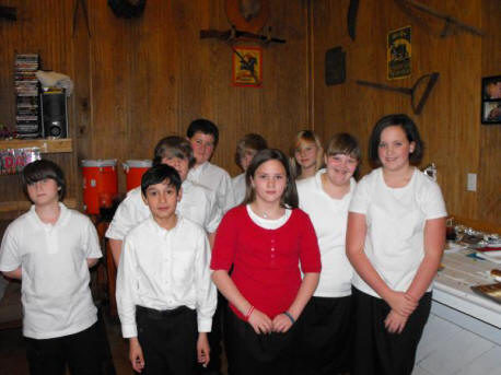 ![]() Our annual Valentine's meal was held this year at Mark & Renee Gill's home in Parrott and was sponsored by the youth group that they lead. Pictured to the right are the waiters & waitresses for the night. They did an excellent job and serving a wonderful meal. After the meal Bro. Dick Gill, Mark, Spencer & Eric Sinn entertained us with a variety of music including valentine's love songs. THANK YOU! to our young people for making the evening a great one. |